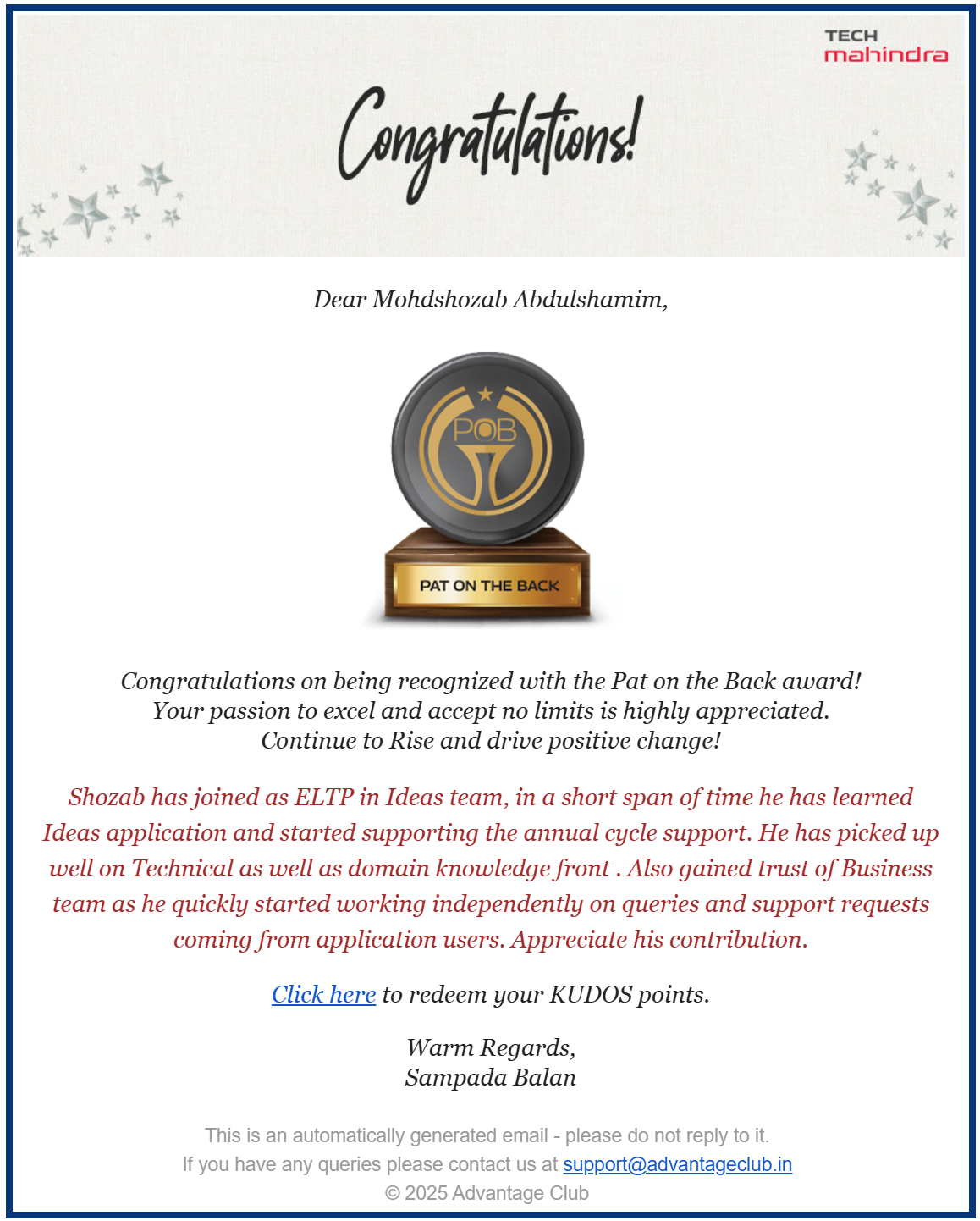Working with Tech Mahindra Ltd. in Pune since August 2024.
